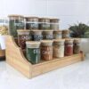 The bamboo three-tier shelf makes it easy to locate any spice you need with ease.