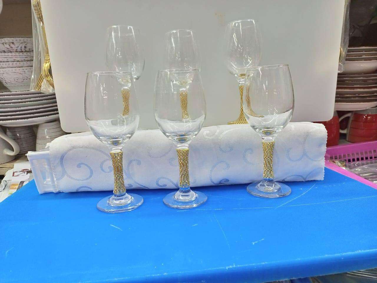 6 pcs gold stem wine glasses