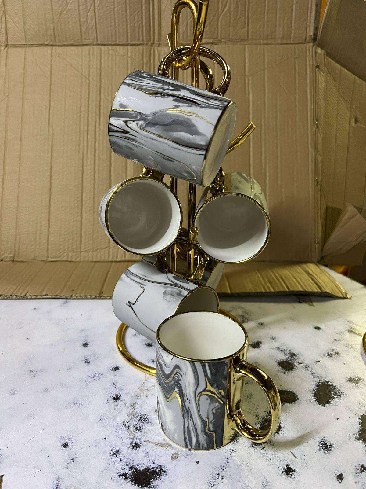 6 pcs gray gold mugs