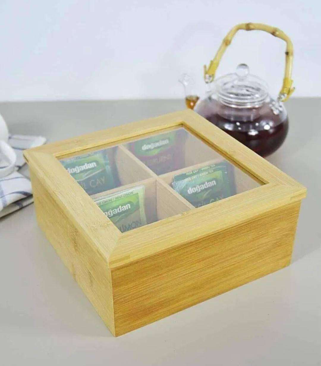 6 Slots Bamboo Tea Bags Organizer | EcoFriendly Design with Clear Hard Cover Top