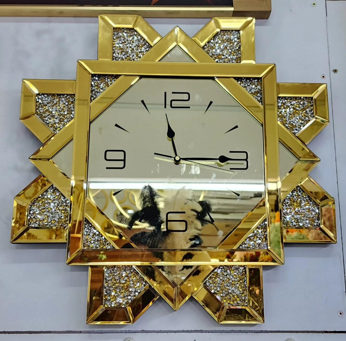 Mirror Wall Clock: Unique octagonal shape. The classy clock face covered with patchwork mirrors covered, four stripes inlay crushed diamonds decor. The glass mirror clock could reflect the other lights of the room. This luxurious, artful large wall clock is a nice addition to any place