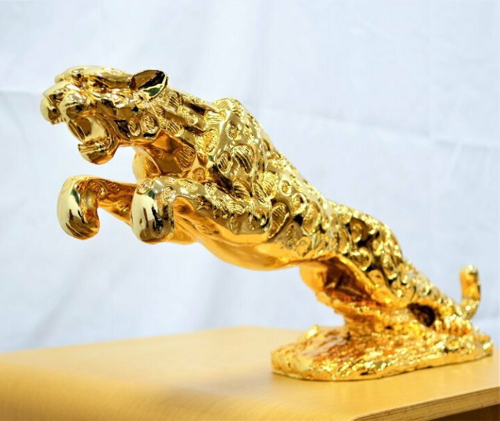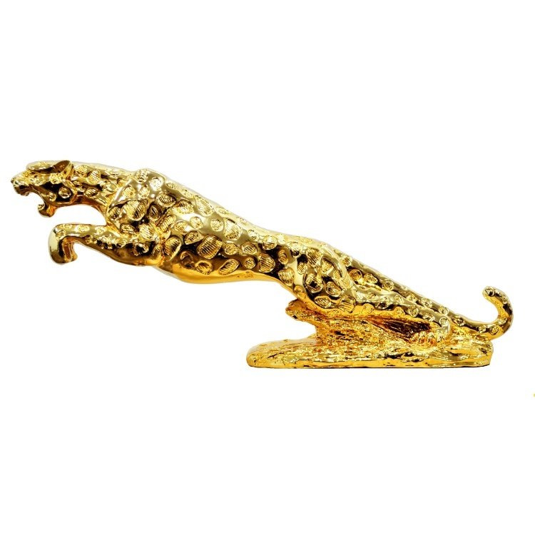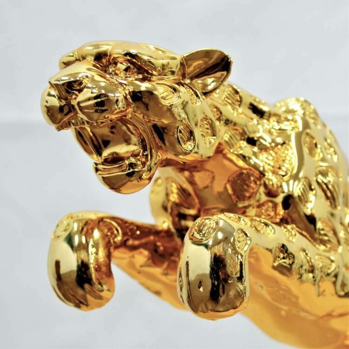 Majestic leopard Sculpture - Glossy Gold-Finished leopard in Mid-Flight, Detailed Design, Symbol of Strength, Freedom & Leadership for Home Decor
