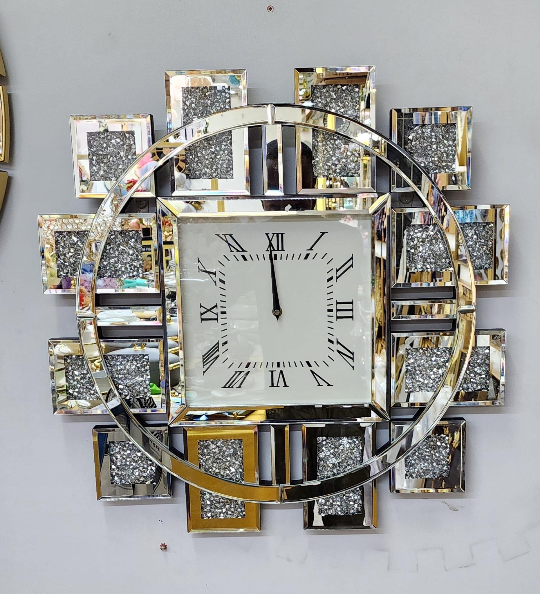Silver Crystal Mirrored Decorative Wall Clock