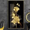 golden floral,Crystal Porcelain Painting Vertical Wall Art for Living Room Decor Home Bathroom Office Deco 50 cm by 90 cm.